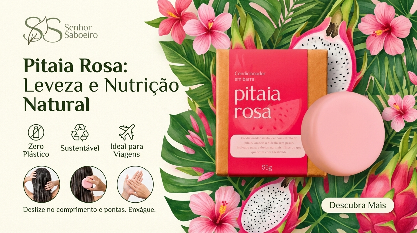 O condicionador sólido de pitaia é uma formulação exclusiva e única no mercado, criada pela equipe SENHOR SABOEIRO, ela tem um alto poder restaurador e hidratante, perfeito para cabelos com tratamentos químicos e coloração. ajuda também para qualquer tipo de cabelo pois controla a oleosidade, mantendo o cabelo saudável e sem ressecar.