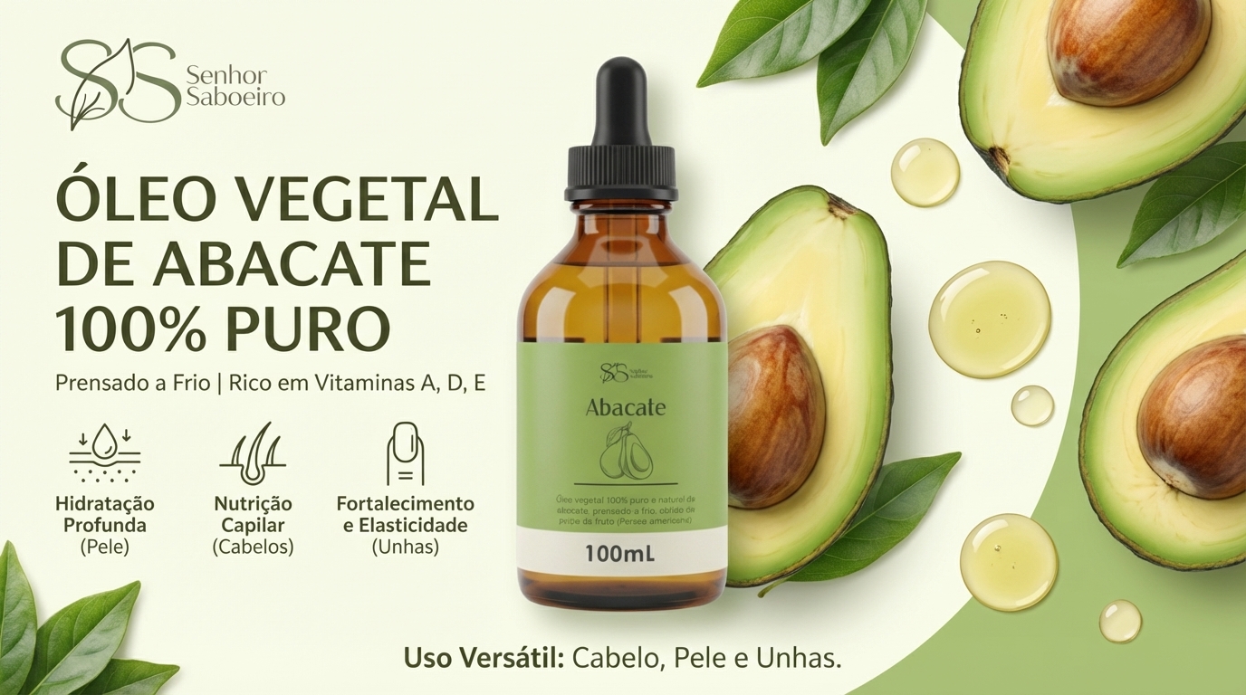 Descubra o segredo para uma pele e cabelos radiantes com o Óleo Vegetal de Abacate da Senhor Saboeiro! Com a mais alta qualidade garantida, nosso óleo é extraído cuidadosamente de abacates frescos e maduros, preservando todos os nutrientes essenciais para o bem-estar da sua pele e cabelo.