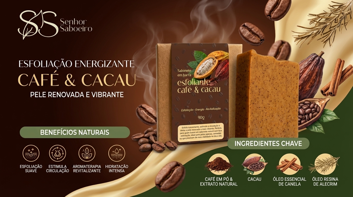 O Sabonete de Café Senhor Saboeiro é um sabonete esfoliante rico em extratos naturais. Um item indispensável para quem busca uma pele firme e com brilho, o café estimula a produção de colágeno e sua ação esfoliante ajuda na renovação celular.
